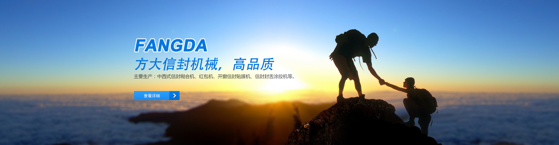 瑞安方大信封機械有限公司,是專業(yè)生產(chǎn)信封機糊合設備系列產(chǎn)品的企業(yè),主要產(chǎn)品有:中西式信封糊合機、紅包機、開窗信封貼膜機、信封封舌涂膠機等。實力來自規(guī)模,品質(zhì)源自專業(yè)。我廠擁有專業(yè)老練的工程設計人員,經(jīng)驗豐富的生產(chǎn)安裝人員,嚴謹認真的質(zhì)量檢驗人員,從而保證了所生產(chǎn)機械的優(yōu)良品質(zhì)。此外,我廠也將從技術上、性能上不斷改進提高,以更好的滿足客戶的需求。“客戶至上,服務為本”是我廠長期一貫的服務理念,從安裝、測試、保養(yǎng)、維修等售后服務,我們會給予客戶充足的信息資訊與技術支持,因此在業(yè)界獲得良好的口碑及信譽,您的滿意是我們的榮耀!歡迎您來電查詢、來人參觀,我們一定能給你滿意的答復!秉承“顧客至上,銳意進取”的經(jīng)營理念,堅持“客戶為先”的原則為廣大客戶提供溫馨的服務。歡迎惠顧!